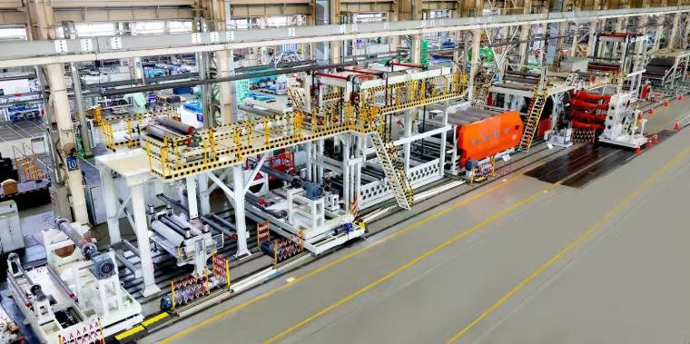 这些卓越性能的背后,源于研发团队在关键技术上的多项突破。“‘无人操作自动卷取’技术可实现自动定位、自动上卸卷,全程无需人工干涉,同时攻克了宽幅大卷径卷取难题,大幅降低人工成本的同时,提升了生产连续性。” 大橡塑公司教授级高级工程师陶丽梅介绍说,“自动裁切装置”技术开创性实现了宽幅厚胶片的在线横向自动裁断功能,为生产线的自动化流转提供了关键支撑。“恒张力成型宽幅分层带”技术成功替代成型机传统工艺,不仅大幅提高生产效率,更从根源上提升分层带的产品质量。
