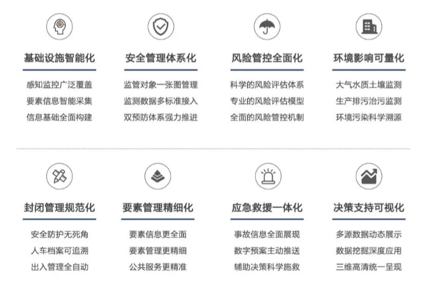 同时建立安全监管、危险源监控、人流物流管控、应急保障和防消结合等“一体化管理”,构建园区安全红线和产业协同。加强化工园区的高效感知和动态监管能力,有效遏制危险化学品生产安全事故。