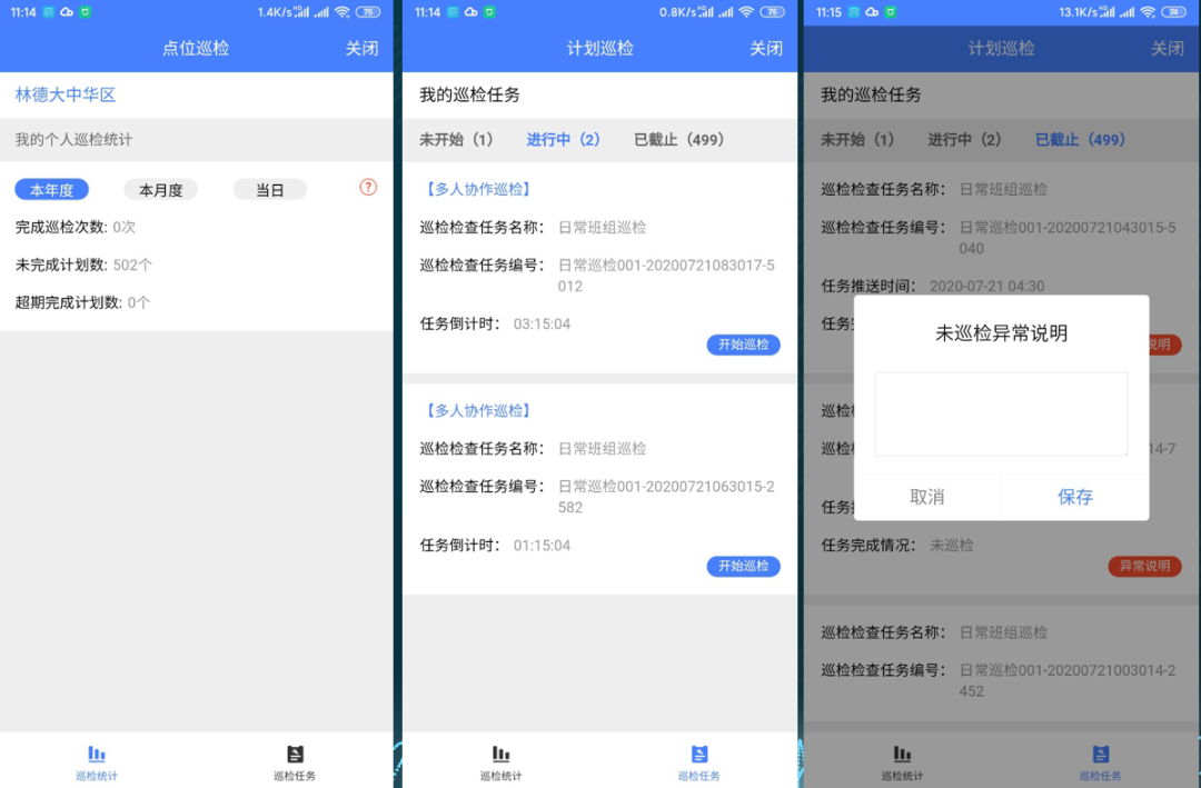 ·支持分-类查看用户的巡检任务情况;