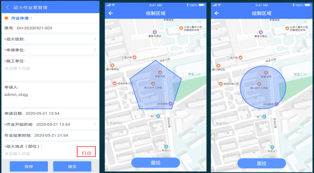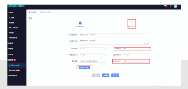 电子作业票作业申请时,绘制作业区域(画图),作业区域将自动同步到人员在岗在位管理系统生成电子围栏,实现监护人作业时间内离岗报警。