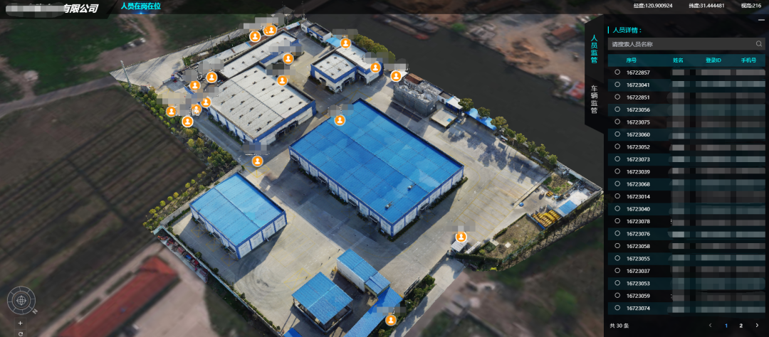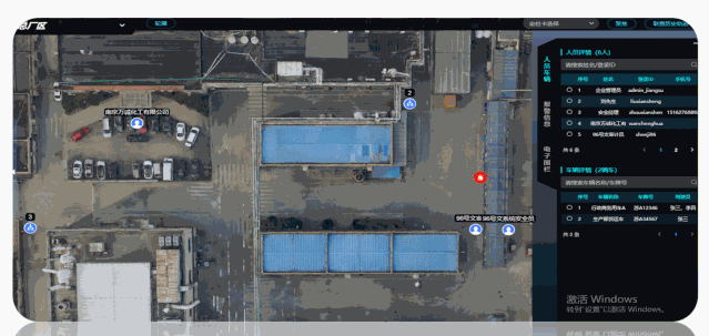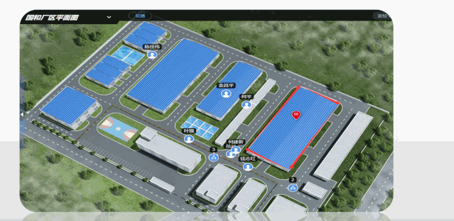 通过将厂区三维图扣在天地图上,可以360度旋转,切换不同视角,实时监控厂区人员,以及查看历史轨迹。![]()
