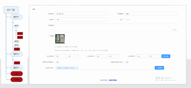 搭建完整的区域体系“总厂---楼宇---楼层”,设置允许进入的部门、岗位、员工,是否允许访客、外来人员进入,绘制图中图